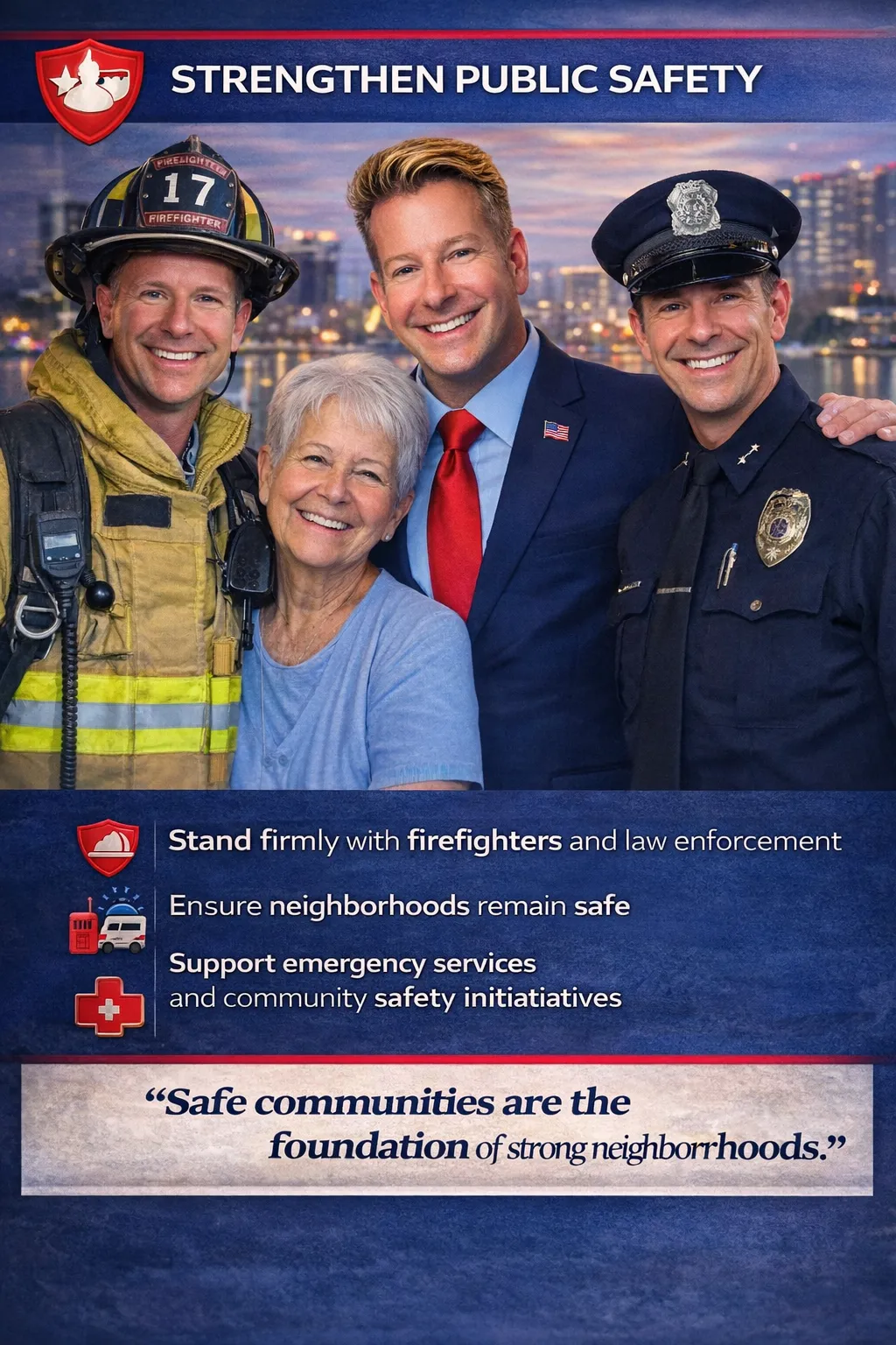 “A clear plan to protect neighborhoods, support seniors, invest in youth, and strengthen our community.”