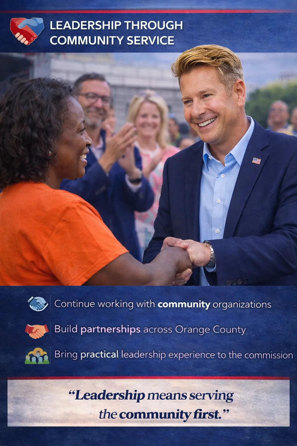 With more than 33 years of experience bringing people together in Orange County, I am ready to lead on Day One … focused on solutions, collaboration, and delivering results for all residents of Orange County District 3.