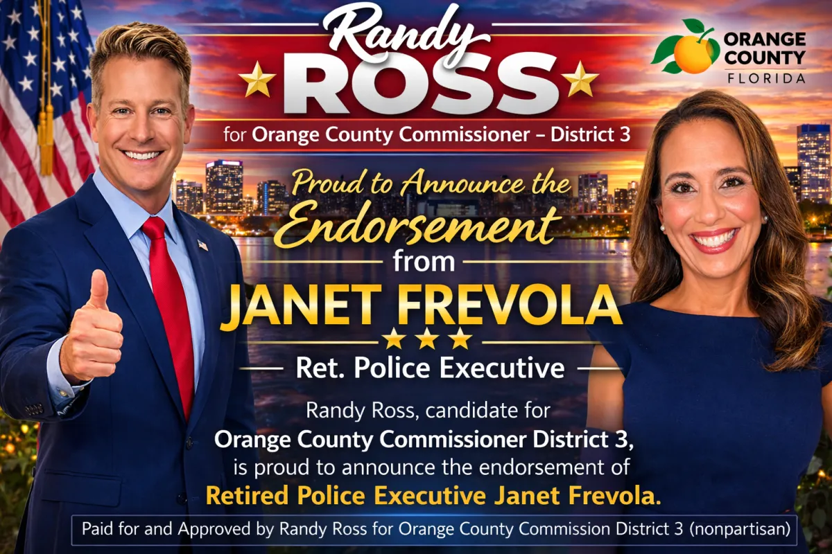 I am proud to endorse Randy Ross for Orange County District 3 Commissioner. Randy always has a vision and the ability to find a solution to the challenges facing our constantly evolving community. His leadership brings people together and focuses on practical, results-driven solutions.